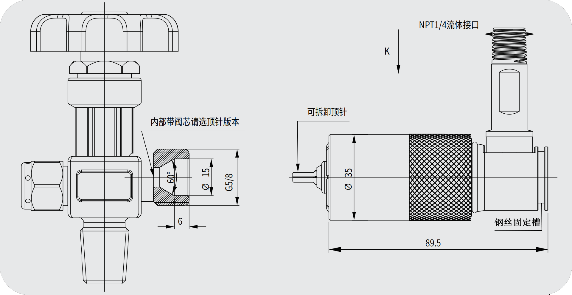 | * 可拆卸顶针设计,可用于带阀气瓶 | |